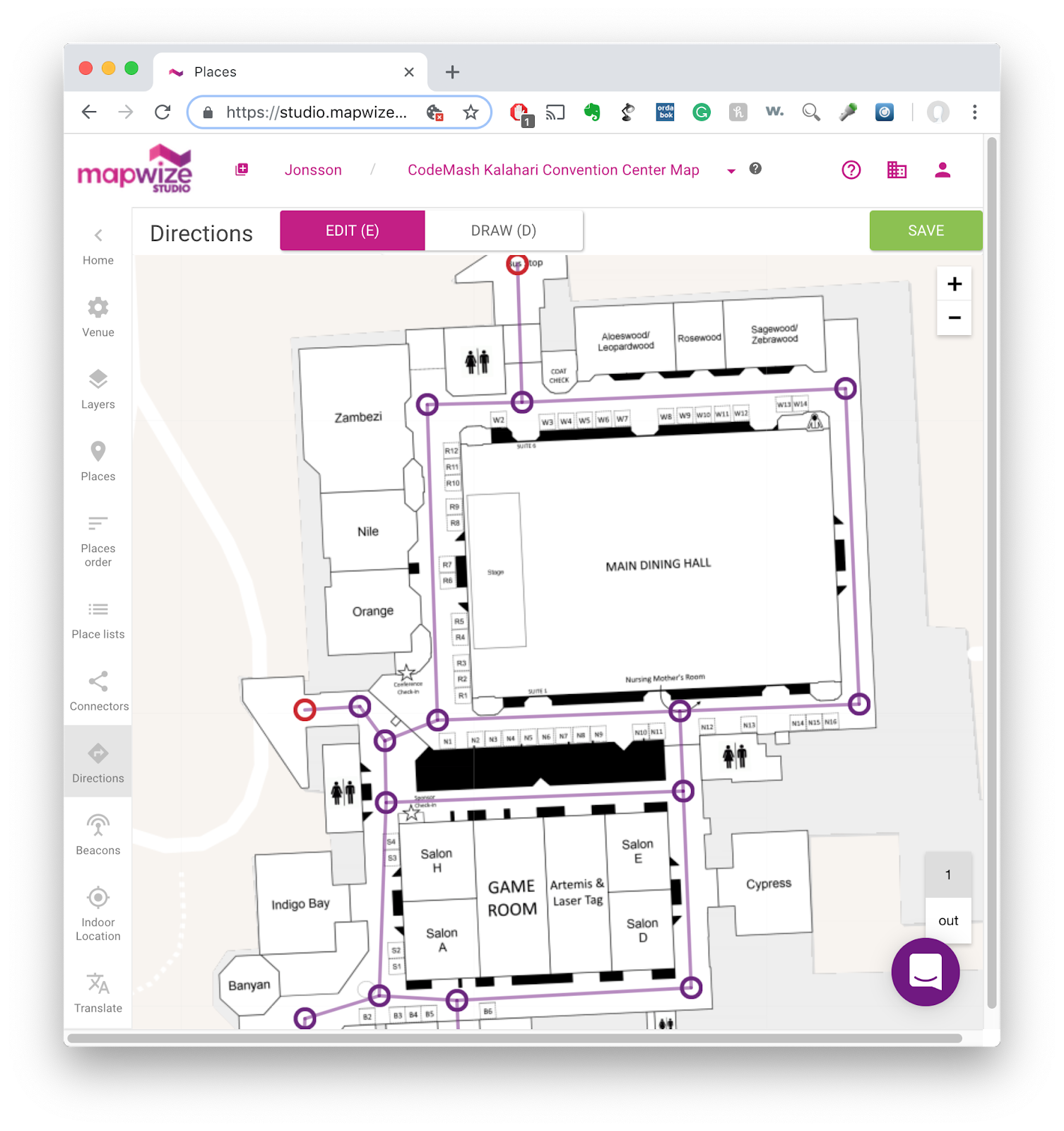 - I imported the image into MapWize Studio and overlayed it onto their street map, which already had the exterior of the Kalahari Convention Center.